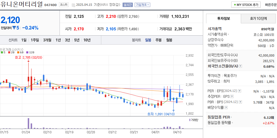 - 시장 상황: 2025년 4월 기준, 중국의 희토류 수출 중단과 트럼프의 관세 정책으로 테마가 재조명되고 있습니다.
