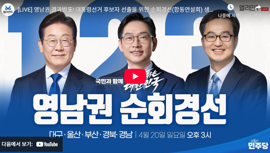 2025년 4월 20일, 더불어민주당은 울산전시컨벤션센터에서 제21대 대통령 선거 후보를 선출하기 위한 영남권 합동연설회를 진행 중입니다. 영남권(대구·경북, 부산·울산·경남)은 민주당의 전통적 험지로, 이곳에서의 표심은 당내 경선은 물론 본선 경쟁력의 중요한 척도로 여겨집니다. 현재 이재명, 김동연, 김경수 후보가 치열한 경쟁을 벌이고 있으며, 오후 5시 15분경 권리당원 및 전국대의원 투표 결과가 발표될 예정입니다. 본 포스팅에서는 역대 경선 결과를 바탕으로 2025년 민주당 영남 경선 결과에 대한 예측과 실시간 경선 결과 발표를 전달하겠습니다.