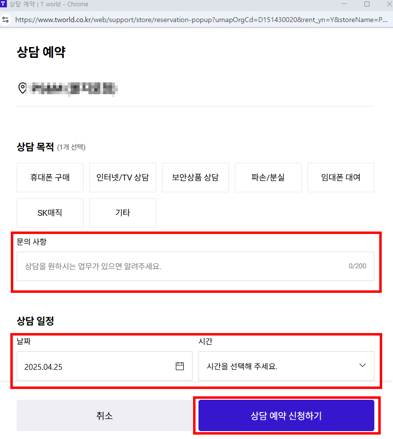 ▶ SKT 유심 교체 예약 ( T월드 매장 방문)