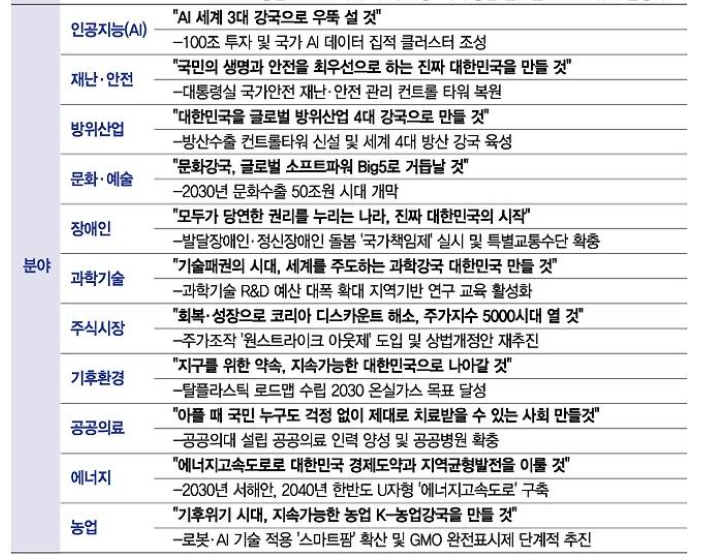 이재명 공약 : 분야별 공약 요약