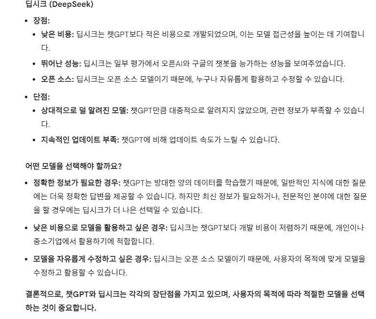 Q. Chat GPT와 Deepseek 장단점 비교해줘