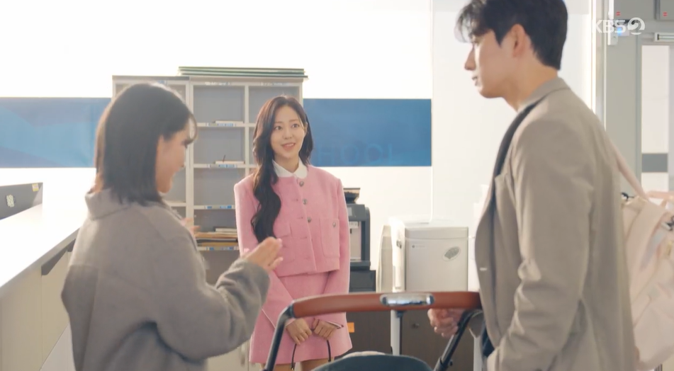 사무실 조교에게 아이를 잠깐 봐달라고 부탁을 하는데 조교는 마침 일이있어 아이를 볼수 없게 됩니다. 결국 아이를 데리고 가서 학생들에게 양해를 구하고 강의를 하겠다는 범수에게 조교는 여기는 미국이 아니라며 만류를 합니다.
