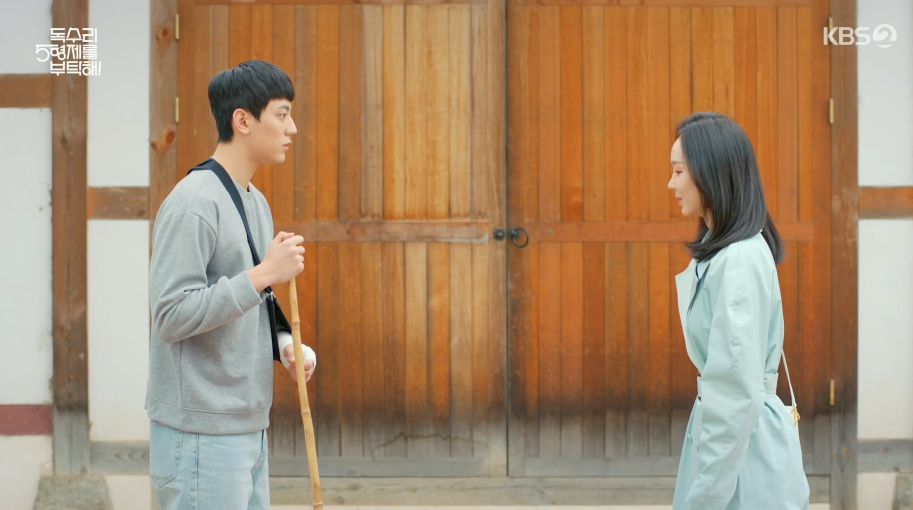 김교수는 전시를 위해 한회장이 샀던 그림을 대여해달라고 부탁을 하고, 답례로 밥을 산다고 하지만 부담스러운 동석은 차로 대신하자고 합니다. 이동하다가 김교수가 넘어지는 척 하고 동석이 이를 부축하는 모습을 본 광숙은 두사람 사이를 오해하고 잘어울린다는 뜻으로 엄치척을 하고 갑니다.