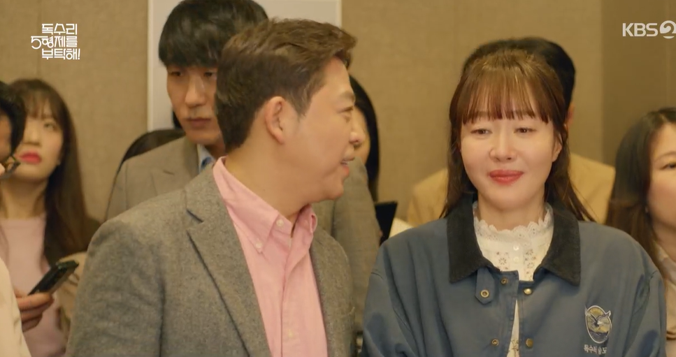 한동석이 자신이 오랜만에 만난 옛직장 동료인 지점장과 함께 있던 것을 오해했다는 것을 알게된 광숙은 웃음을 터뜨리고 영문을 모르는 동석이 당황해 하면서 독수리 5형제를 부탁해! 15회는 끝이 납니다.