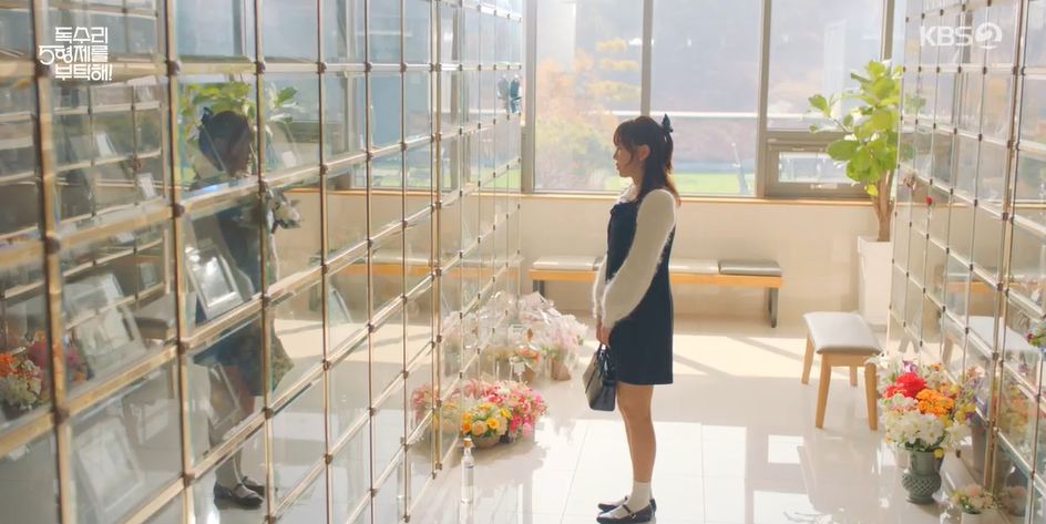 광숙은 새로나온 장광주를 들고 장수가 있는 납골묘를 가서 그리운 마음을 전합니다.