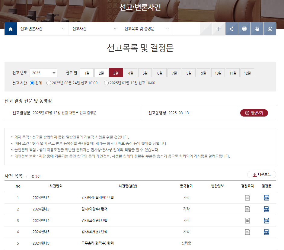 - 결정: 2025년 3월 13일, 전원일치로 기각.