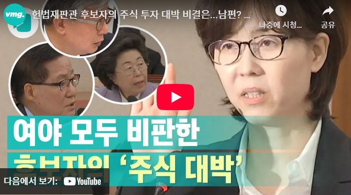 - 이미선 재판관과 남편 오충진 변호사는 과거 주식 투자로 논란이 된 바 있습니다. 2019년 인사청문회 당시 부부 합산으로 약 35억 원 상당의 주식을 보유했다고 신고했으며, 이후에도 주식 자산이 증가한 것으로 보입니다. 2025년 재산 증가분(약 3억 9,000만 원) 중 일부는 주식 투자 수익으로 추정됩니다.