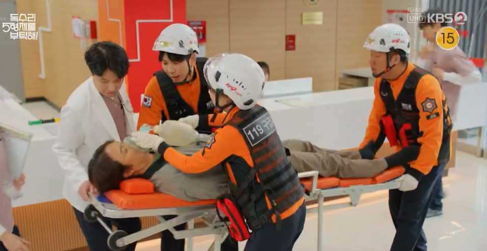 천수는 의식을 잃고 자가호흡이 안되는 상태에서 결국 119로 병원에 옮겨지면서 독수리 5형제를 부탁해! 16회는 끝이 납니다.